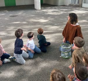 Les MS ont accueilli un élevage de papillons pendant toute la période. Ils ont pu observer le cycle de vie des papillons : de la petite chenille, à la grosse chenille, à la chrysalide jusqu’au papillon qui sort de chrysalide. Puis nous avons relâché les papillons dans la cour pour leur rendre leur liberté !