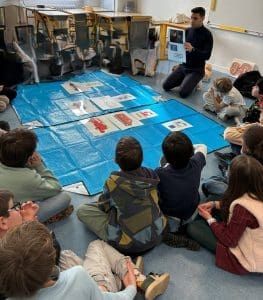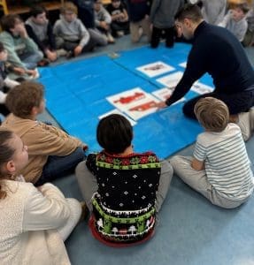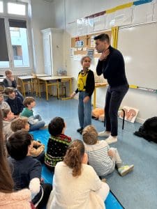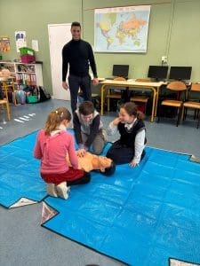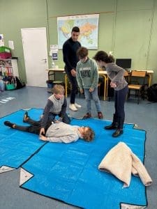 Les élèves de la classe de CM2 ont bénéficié d’une intervention dédiée aux gestes de premiers secours, animée par un pompier, venu partager son expérience et son savoir-faire.