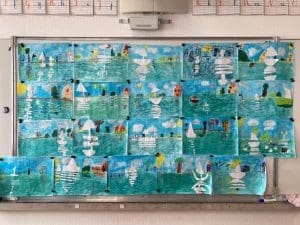 L’œuvre « Régates à Argenteuil », peinte en 1874, a ensuite servi de point de départ à une production artistique. En observant attentivement les couleurs, les formes et le mouvement des voiliers sur l’eau, les élèves ont été invités à réaliser leur propre version du tableau.